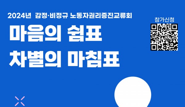 사이트맵 소개 인사말 센터 소개 조직도 주요연혁 오시는길 사업 한눈에 보기 사업 안내 노동 교육 교육 이용안내 단체교육 신청 강좌 신청 온라인 교육 노동법률상담 노동법률상담 이용안내 온라인 상담 (일반) 온라인 상담 (청소년) 방문예약 자주 묻는 질문 동네방네 노무사 동네방네 노무사 사업 소개 사업주 컨설팅 신청 노동안전 노동안전 사업 소개 집단상담 신청 개인상담 신청 자료 발간 자료 이슈페이퍼 정책연구보고서 정책연구결과 인포그래픽 기타 미디어 자료 카드뉴스 웹툰 기타 영상 자료 토론회 노동머선129 서포터즈단 기타 일반자료 노동연구 톺아보기 기타 시민참여활동 공모전 노동사진 공모전 노동수기 공모전 온라인 사진전 기타 캠페인 캠페인 이벤트 온라인 캠페인 기타 알림 공지사항 센터소식 업무협약 좌담회|토론회 이모저모 기타 언론소식 노동뉴스 언론 속 센터 기타 보도자료