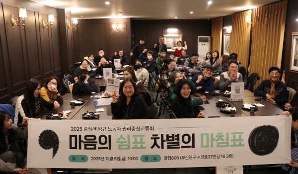 토론회 노동머선129 서포터즈단 기타 기타 2025 부산노동권익센터 성과영상 최고관리자 02-11 123 토론회 부산지역 관광숙박업 종사자 노동실태와 과제 토론회 <부산지역 관광숙박업 종사자 노동실태와 과제>○ 일시: 2025년 12월 22일(월) 14:00~16:30○&n.. 최고관리자 01-19 143 토론회 부산지역 의존계약자 노동실태와 지원방안 토론회 부산지역 의존계약자 노동실태와 지원방안 토론회 ○ 일시: 2025년 12월 19일(금) 14:.. 최고관리자 01-16 126 토론회 부산지역 생활폐기물 환경미화원 산업안전실태와 보호방안 토론회 <부산지역 생활폐기물 환경미화원 산업안전실태와 보호방안>○ 일시: 2025년 12월 12일(금) 14.. 최고관리자 01-09 151 노동머선129 [부산노동권익센터] 노동 머선129 - "평범한 일상의 든든한 지원군" 장애인활동지원사 최고관리자 12-31 151 노동머선129 [부산노동권익센터] 노동 머선129 - "돌봄의 하루" 요양보호사의 따뜻한 손길 최고관리자 12-31 131 기타 2025 감정·비정규 노동자 권리증진교류회 '마음의 쉼표 차별의 마침표' 최고관리자 12-31 147 노동머선129 [노동 머선129] 도시를 지키는 히어로의 손끝 부산노동권익센터 09-22 261 머선129 [노동 머선 129] 작업복 세탁소 "노동을 씻는 시간" 부산노동권익센터 06-24 340 토론회 부산지역 미용업 종사자 노동실태와 지원방안 토론회 부산노동권익센터 01-13 487 토론회 부산지역 반려동물산업 종사자 노동실태와 정책방안 토론회 부산노동권익센터 01-13 480 토론회 부산지역 봉제업 종사자 노동실태와 지원방안 토론회 부산노동권익센터 01-13 493 노동머선129 [노동 머선129] 미용사 부산노동권익센터 01-02 498 기타 2024 감정·비정규 노동자 권리 증진 교류회 <마음의 쉼표, 차별의 마침표> 부산노동권익센터 12-16 510 머선129 [노동 머선 129] 문화해설사 부산노동권익센터 11-06 565 토론회 부산지역 판매직 노동자 감정노동실태와 정책과제 토론회 부산노동권익센터 11-06 560 토론회 부산지역 학교급식 노동자 안전보건실태와 과제 토론회 부산노동권익센터 11-06 577 토론회 부산노동통계 결과발표회 부산노동권익센터 07-11 656 노동머선129 [노동 머선129] 반려동물 산업 종사자 부산노동권익센터 07-09 625 서포터즈단 [제5기 서포터즈] 여름철 야외에서 일하는 옥외노동자 부산노동권익센터 06-26 645 열린1페이지 2페이지 3페이지 4페이지 5페이지 6페이지 맨끝