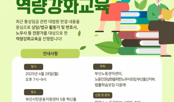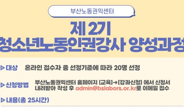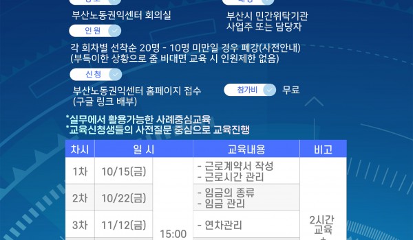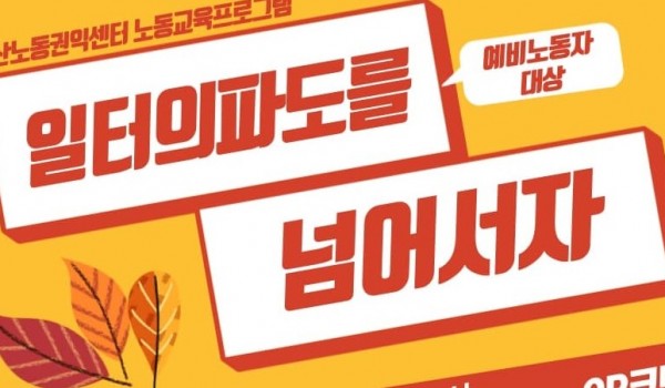 사이트맵 소개 인사말 센터 소개 조직도 주요연혁 오시는길 사업 한눈에 보기 사업 안내 노동 교육 교육 이용안내 단체교육 신청 강좌 신청 온라인 교육 노동법률상담 노동법률상담 이용안내 온라인 상담 (일반) 온라인 상담 (청소년) 방문예약 자주 묻는 질문 동네방네 노무사 동네방네 노무사 사업 소개 사업주 컨설팅 신청 노동안전 노동안전 사업 소개 집단상담 신청 개인상담 신청 자료 발간 자료 이슈페이퍼 정책연구보고서 정책연구결과 인포그래픽 기타 미디어 자료 카드뉴스 웹툰 기타 영상 자료 토론회 노동머선129 서포터즈단 기타 일반자료 노동연구 톺아보기 기타 시민참여활동 공모전 노동사진 공모전 노동수기 공모전 온라인 사진전 기타 캠페인 캠페인 이벤트 온라인 캠페인 기타 알림 공지사항 센터소식 업무협약 좌담회|토론회 이모저모 기타 언론소식 노동뉴스 언론 속 센터 기타 보도자료