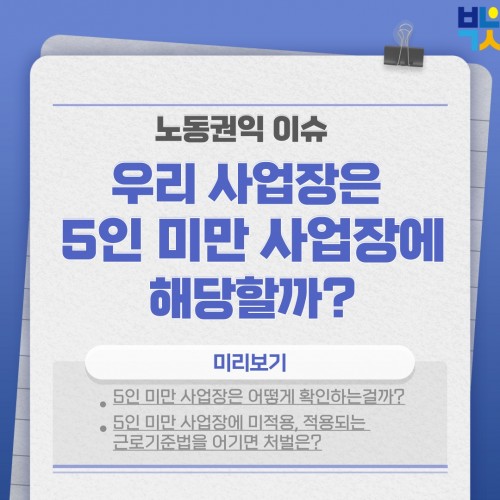 카드뉴스 웹툰 기타 카드뉴스 [제4기 서포터즈] 옥외노동자 보호 및 처우 개선방안 카드뉴스 [제 4기 서포터즈] 폭언에 익숙해지지 마세요 카드뉴스 [제 4기 서포터즈] 감정노동자가 뭔데? 카드뉴스 [3기 서포터즈] 당신이 꼭 알아야 할 권리! 노동시간 단축제도 카드뉴스 [3기 서포터즈] 노동절에 대해서 알려드립니다! 카드뉴스 [3기 서포터즈] 세계 각국의 노동절 알아보기 카드뉴스 [3기 서포터즈] 카드뉴스 - 직장 내 괴롭힘 예방(법과 예방교육까지) 카드뉴스 [3기 서포터즈] 카드뉴스- 직장 내 괴롭힘 대처방안 카드뉴스 [2기 서포터즈] 카드뉴스 - 겨울철 옥외노동자를 위한 노동 카드뉴스 [2기 서포터즈] 카드뉴스-우리는 옥외노동자입니다 카드뉴스 [2기 서포터즈] 카드뉴스-우리 사업장은 5인 미만 사업장에 해당할까? 카드뉴스 [2기 서포터즈] 웹툰-5인 미만 사업장이 지켜야 하는 노동법 카드뉴스 [2기 서포터즈] 카드뉴스-5인 미만 사업장 노동법을 '기억해주5' 카드뉴스 [2기 서포터즈] 카드뉴스 - 부산노동권익센터 톺아보기 카드뉴스 [2기 서포터즈] 카드뉴스 - Congratulate Birthday! 카드뉴스 [2기 서포터즈] 카드뉴스 - 1살이 되었어요! 처음 1페이지 2페이지 열린3페이지 4페이지 5페이지 맨끝