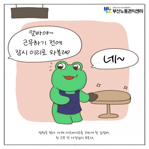 사이트맵 소개 인사말 센터 소개 조직도 주요연혁 오시는길 사업 한눈에 보기 사업 안내 노동 교육 교육 이용안내 단체교육 신청 강좌 신청 온라인 교육 노동법률상담 노동법률상담 이용안내 온라인 상담 (일반) 온라인 상담 (청소년) 방문예약 자주 묻는 질문 동네방네 노무사 동네방네 노무사 사업 소개 사업주 컨설팅 신청 노동안전 노동안전 사업 소개 집단상담 신청 개인상담 신청 자료 발간 자료 이슈페이퍼 정책연구보고서 정책연구결과 인포그래픽 기타 미디어 자료 카드뉴스 웹툰 기타 영상 자료 토론회 노동머선129 서포터즈단 기타 일반자료 노동연구 톺아보기 기타 시민참여활동 공모전 노동사진 공모전 노동수기 공모전 온라인 사진전 기타 캠페인 캠페인 이벤트 온라인 캠페인 기타 알림 공지사항 센터소식 업무협약 좌담회|토론회 이모저모 기타 언론소식 노동뉴스 언론 속 센터 기타 보도자료